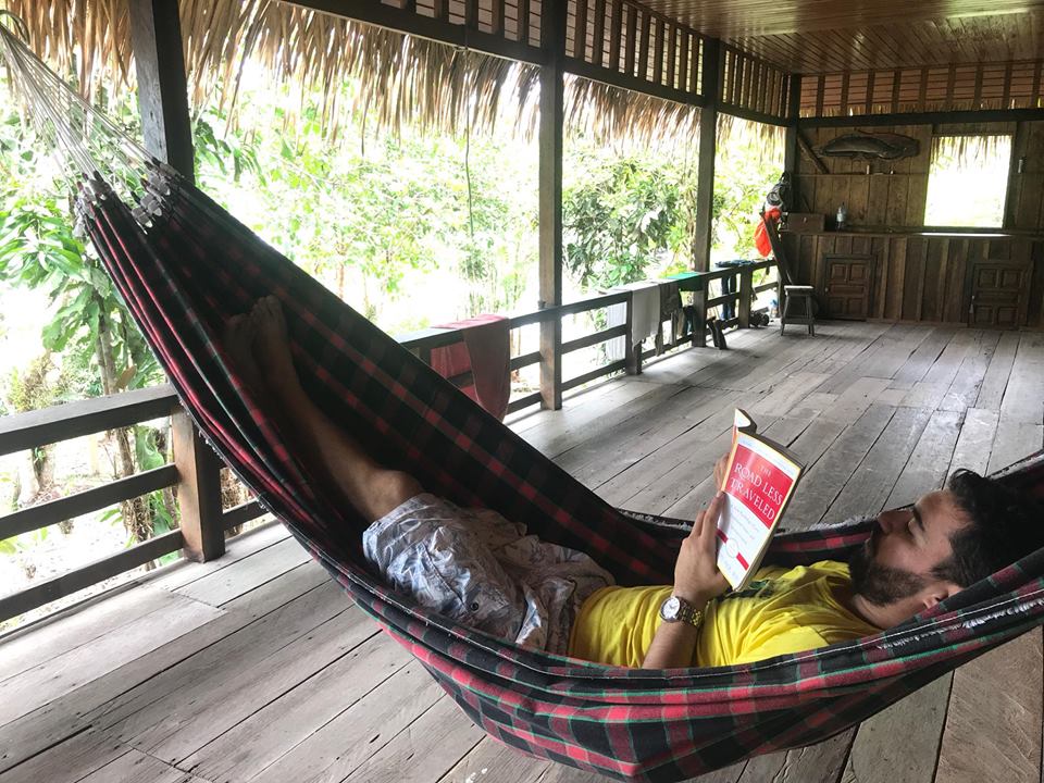 أول ما فعلته هو العوم في نهر الأوروبو لما لذلك من رمزية عندي “حلم الغوص الطفولي في الأمازون”. لون نهر “الأوروبو” الأسود تعطيه خاصية فريدة، سبب ذلك ماءه الحمضي الذي تكثر فيه الأملاح والنباتات ولأنه قريب من بعض الشلالات. يشترك معه في هذه الخاصية نهر ريو نيغرو غيير البعيد من هنا. ما يزيد السباحة في هذا النهر سحرا ومتعة كذلك هو تهاطل الأمطار الإستوائية بغزارة شديدة وبشكل متكرر. بينما كنّا نسبح كالأطفال الذين لا يخرجون من مياه الشواطئ خلال العطل إلا للأكل أو اللعب في الرمال، أخبرنا جوزي بأن نهيئ أنفسنا للذهاب إلى وسط الغابة لأننا سنقضي الليلة هناك، في الهواء الطلق، على أصوات القردة والحشرات والوحوش في الظلام الدامس …